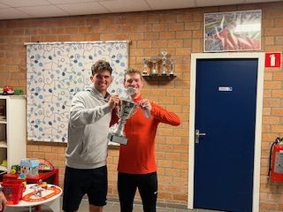 Op vrijdagavond 31 oktober werd weer de jaarlijkse koppelloop bij AV DEM gehouden. Het unieke van deze loop is dat iedereen mag meedoen en dat de loop gratis is. Voordat het startschot klonk was er een gezellige drukte van de 50 koppels die de strijd met elkaar aangingen. Het concept van de koppelloop is eenvoudig. Er wordt vijf kilometer gelopen op de atletiekbaan door koppels van twee lopers. De eerste loper loopt 500 meter en dan neemt de tweede loper het over en loopt 400 meter. De eerste loper loopt dan ook één ronde, dus 400 meter. Dit gaat dan voor beide lopers door tot de laatste ronde. De laatste loper loopt dan nog 500 meter om daarna te finishen. De wisselbeker werd veroverd door Johan Polman en Kees Aardenburg in een tijd van 14.25. Waarmee ze iets te kort kwamen om het parcoursrecord van 2016 te verbeteren dat staat op 14.20. Bij de gemengde koppels pakte Leroy de Graaff met Tessa Kuijpers de winst en bij de vrouwen koppels waren dat Sanne Bakker met Hester Sotera. Alle winnaars ontvingen een kadobon.